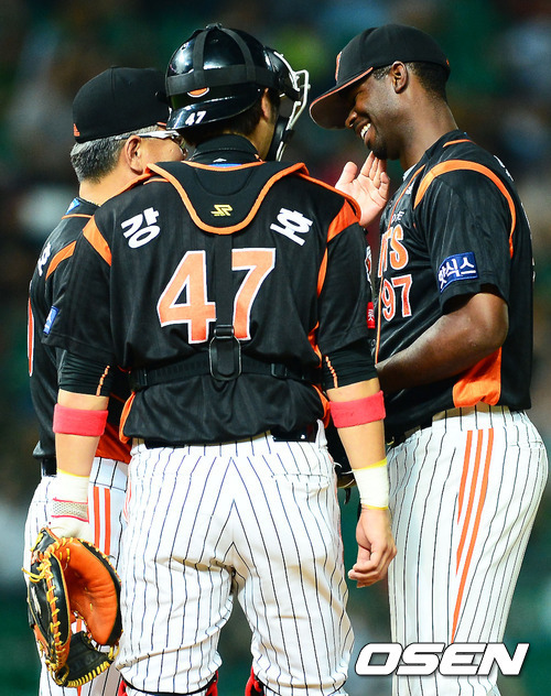 그리고는 포수 마스크를 쓴 채 통역도 없이 유먼에게 뭔가를 열심히 말했다. 이에 미국인 유먼은 알았다는 듯 연방 고개를 끄덕여 보였다. 결과는 대만족. 연속 스트라이크 2개를 꽂아 최윤석을 압박한 후 몸쪽 볼로 3루 땅볼을 유도해냈다. 유먼은 이후 차분하게 위기를 헤쳐나가더니 7⅓이닝 동안 2실점(비자책)으로 시즌 5승에 성공했다. 4회 이후 별다른 위기를 겪지도 않았다. 타선은 결국 5점을 더내 유먼의 어깨를 가볍게 해줬다.