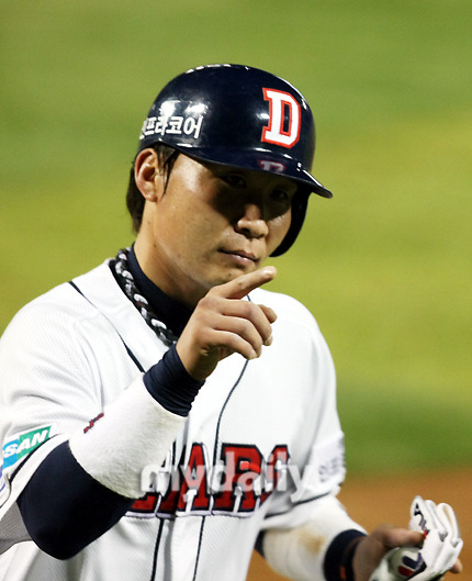 [롯데 유니폼을 입고 첫 출장을 하게 된 용덕한의 두산 시절. 사진=마이데일리DB]