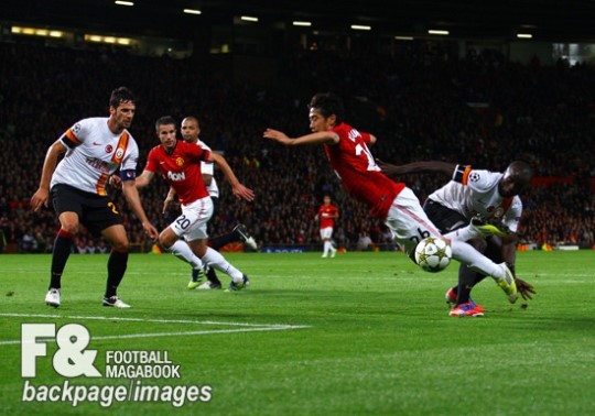 경기 초반 맨유의 측면 공략이 있었다. 나니와 발렌시아가 상대 측면을 차례로 파고들어 중앙으로의 패스를 시도했다. 상대 골키퍼에게 막혔지만 초반 압박을 통한 기선 제압으로 효과적이었다.