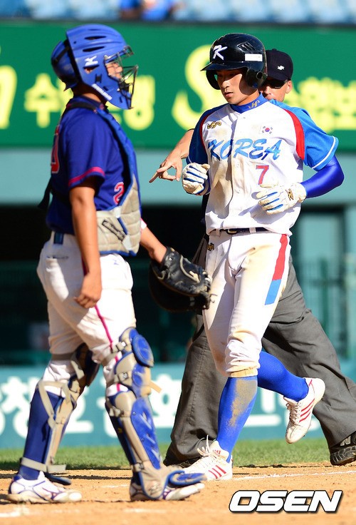 9회말 한국의 마지막 공격. 선두타자 윤대영은 우중간 안타를 때려내며 동점 및 역전을 향한 스타트를 끊었다. 2사 2루에서 송준석(장충고, 삼성 4라운드)의 우익수 방면 바가지 안타가 나왔고 2루 대주자 계정웅(신일고, 두산 10라운드)이 홈을 밟으며 3-3 천신만고 끝 동점이 되었다. 결국 경기는 연장 타이브레이크로 결정되게 되었다.