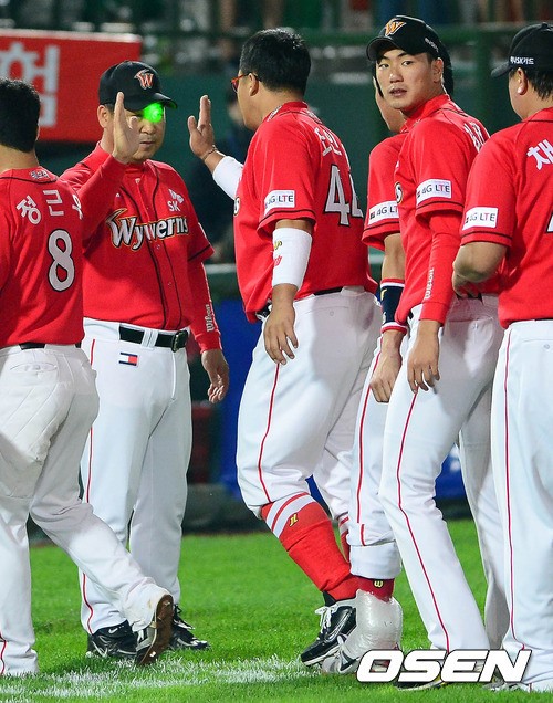 감독의 얼굴에 녹색 동그라미가 생기자 놀란 SK 선수들은 1루측 관중석을 바라보며 비춘 사람을 찾아내려는 모습을 보이기도 했다. 적지에서 2연승을 거두며 2위를 탈환한 SK 선수단은 기쁨을 누릴 새도 없이 경기장을 빠져나가야 했다.