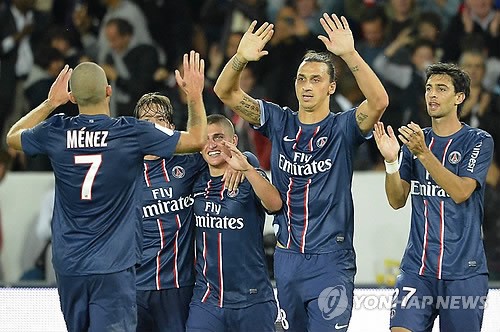 ![]() PSG의 즐라탄 이브라히모비치(오른쪽 두번째)가 주말 툴루즈 전에서 골을 터뜨린 뒤 동료들의 축하를 받고 있다. (사진=연합뉴스) |